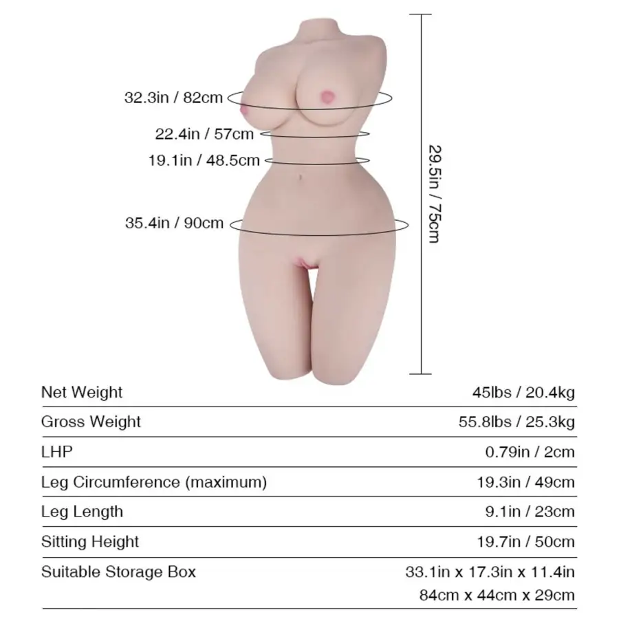 Ready to indulge in steamy ecstatic moments with our stunning Tantaly torso sex doll model? Meet our curvy irresistible female torso doll only for your ultimate comfort and 100% satisfaction. With its beautiful silicone skin, this sexy torso doll features realistic skin textures and realistic private details.
